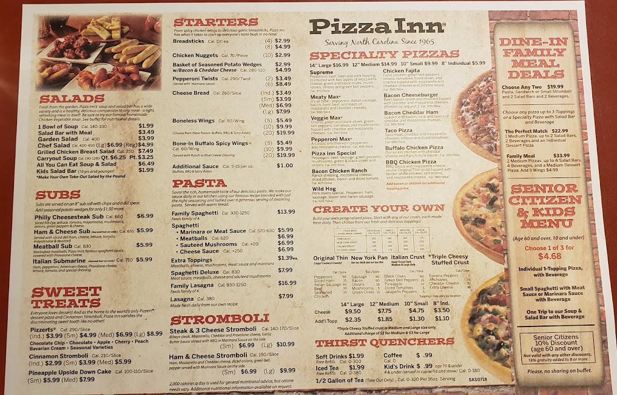 Welcome to Pizza Inn Wilson, where pizza paradise awaits at 700 Ward Blvd, Wilson, NC. This beloved eatery has carved a niche for itself with its tempting buffet, offering a vast selection of pizzas that cater to every palate. Guests rave about the fresh, piping hot pizzas that continuously grace the buffet, along with a vibrant salad bar that perfectly complements the meal.